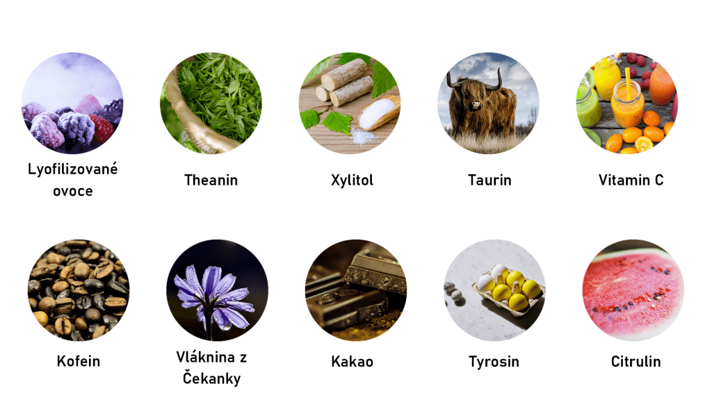 Přírodní kofein pomáhá k lepšímu soustředění, zvýšení výkonu či bystrosti. Vitamin C přispívá ke snížení míry únavy a vyčerpání, normální psychické činnosti, nervové soustavy, ochraně buněk před oxidativním stresem. Tyto složky tak spolu v kombinaci s L-theaninen, Citrulinem nebo Tyrosinem z Tackery dělají funkční doplněk stravy postavený na více aktivních látkách než klasický, plechovkový energy drink.
