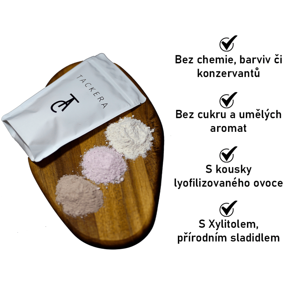 Díky práškové formě si sám můžeš určit to, jak bude Tackera chutnat. Smíchej ji s vodou, mlékem, jogurtem nebo rovnou nasypej do pusy.